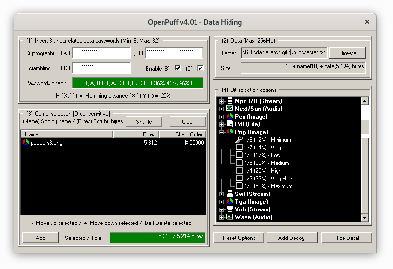 OpenPuff is a free tool for hiding information on different types of media. Next, we are going to analyze this tool in its version v4.0.1, when the images in which the information is hidden are uncompressed.